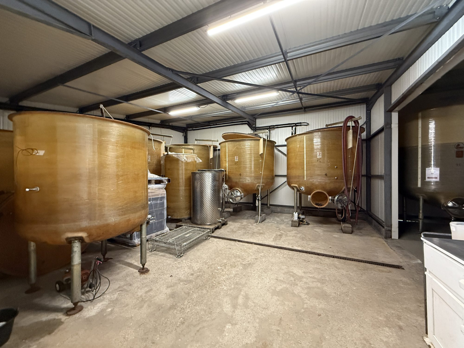 - Bâtiment à structure métallique (cuverie, stockage matériel, atelier) : environ 260 m²