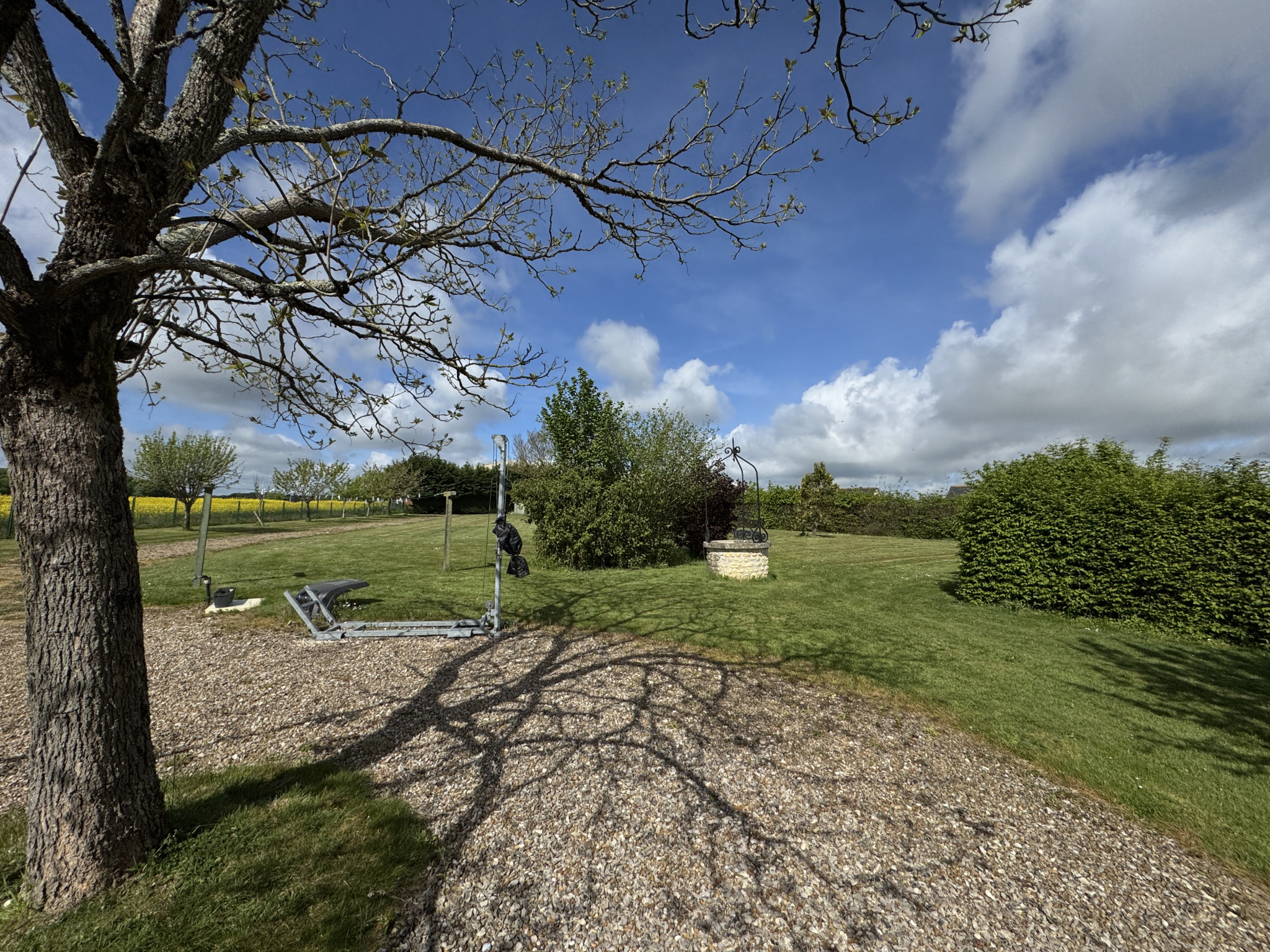 À l’extérieur, le terrain d’environ 4 000 m² est aménagé avec des haies variées offrant une bonne intimité et un cadre agréable à vivre. La propriété dispose également d’une volière, d’une dépendance et d’un cabanon de jardin, offrant de belles possibilités d’usage.