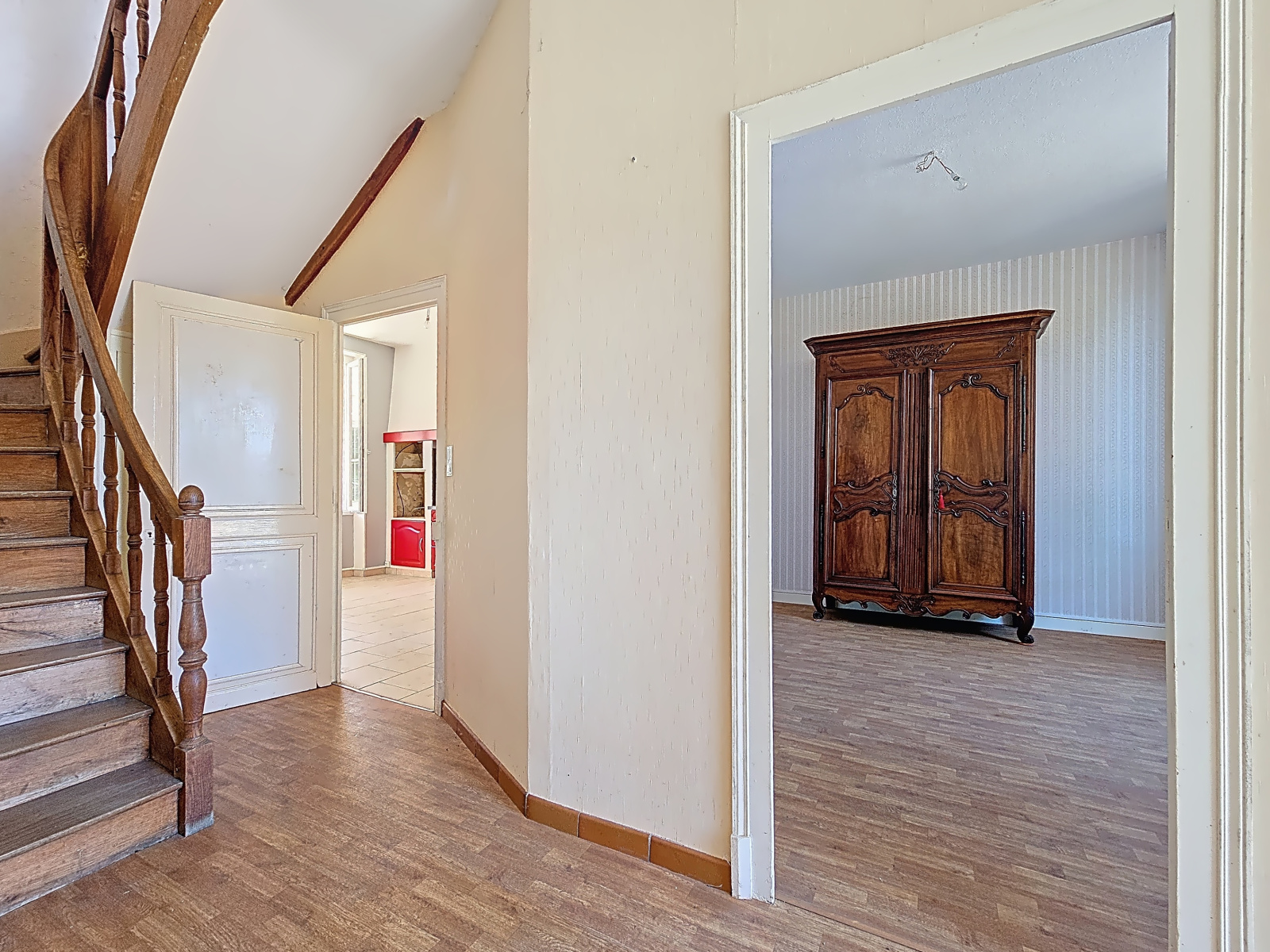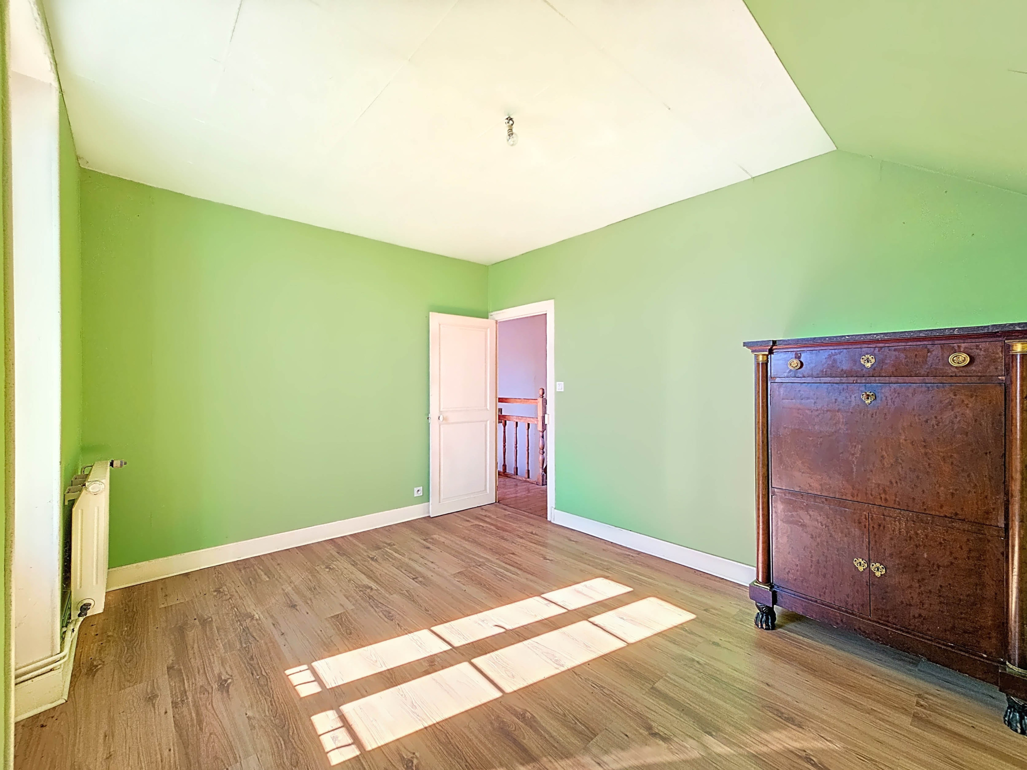 Maison familiale située en sortie de bourg (avec commodités) de 5 pièces / 4 chambres. Le rez-de-chaussée comprend : entrée, grand séjour avec insert et lumière traversante, cuisine aménagée, chambre, WC. A l'étage : palier desservant 3 chambres, salle de bain, WC. Jardin clos avec puits et garage avec atelier et cellier. Chauffage central au gaz citerne. Ensemble en bon état général, à rafraichir. Assainissement individuel fonctionnel mais non conforme.