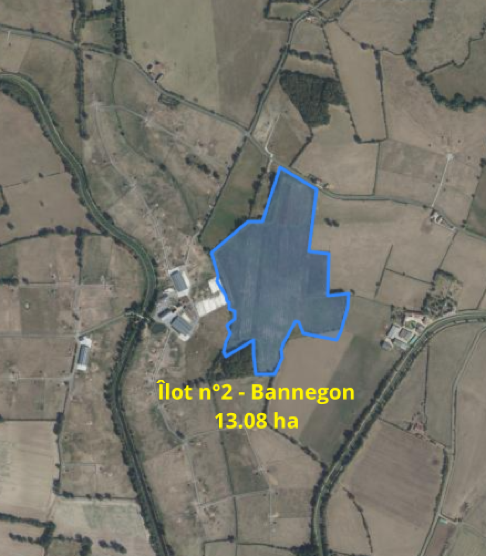 - îlot 2 : 13.08 ha de parcelles agricoles (remise en état à prévoir) regroupées sur la commune de Bannegon.